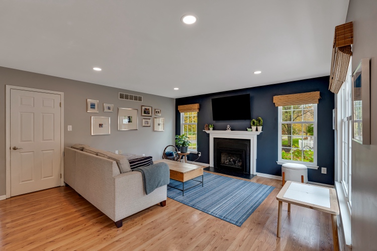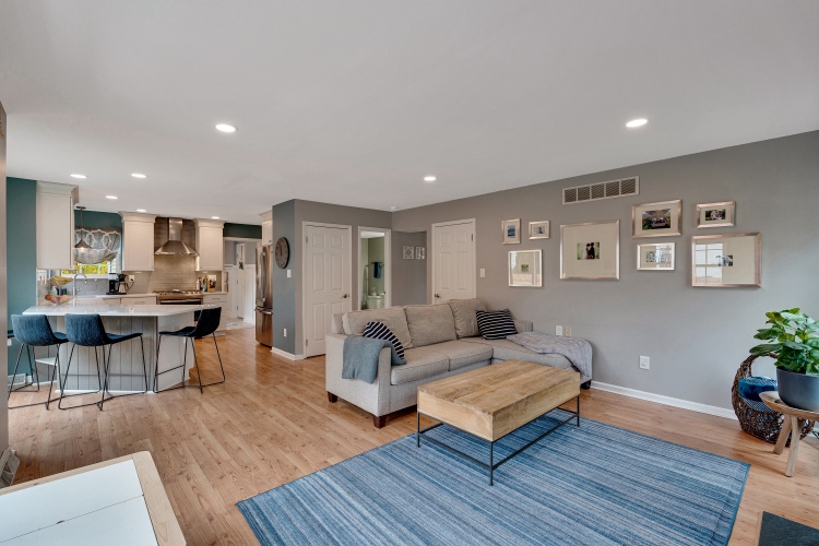 The heart of the home is the beautifully renovated kitchen, featuring crisp white cabinetry, quartz countertops, stainless steel appliances, gas cooking, under cabinet/task lighting, recessed lighting, seating for four, the all important window over the sink, and an easy flow to both the dining area and the spacious family room.