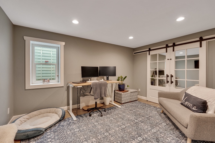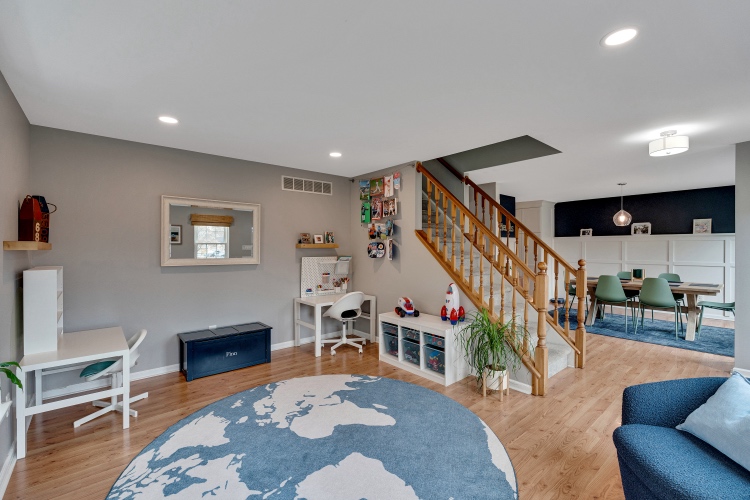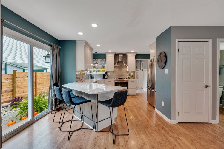 The heart of the home is the beautifully renovated kitchen, featuring crisp white cabinetry, quartz countertops, stainless steel appliances, gas cooking, under cabinet/task lighting, recessed lighting, seating for four, the all important window over the sink, and an easy flow to both the dining area and the spacious family room.