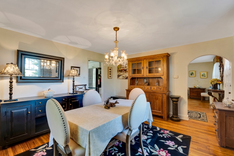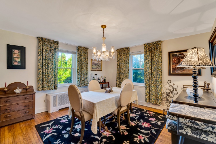 The first floor offers a spacious living room featuring a wood burning fireplace and access to a sweet side porch. The dining room is also very nicely sized, and both of these rooms boast hardwood flooring.
